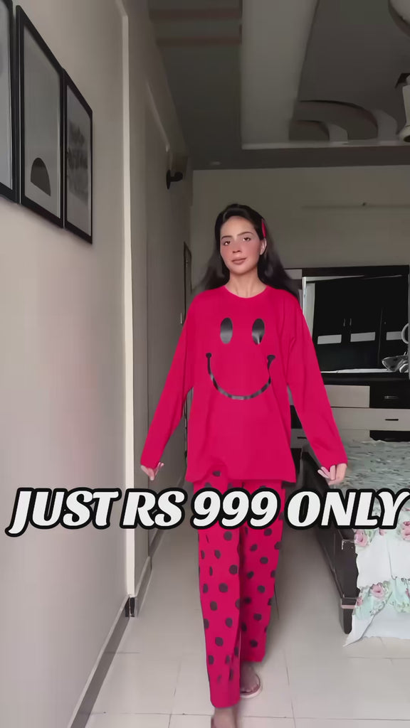 Experience ultimate comfort with our cozy printed cotton jersey night suit. This stylish nightwear set includes a round neck shirt and trousers designed for a relaxed fit. Available in various sizes, this 2-piece ensemble is perfect for a good night's sleep or lounging around the house. Embrace comfort and style every night!